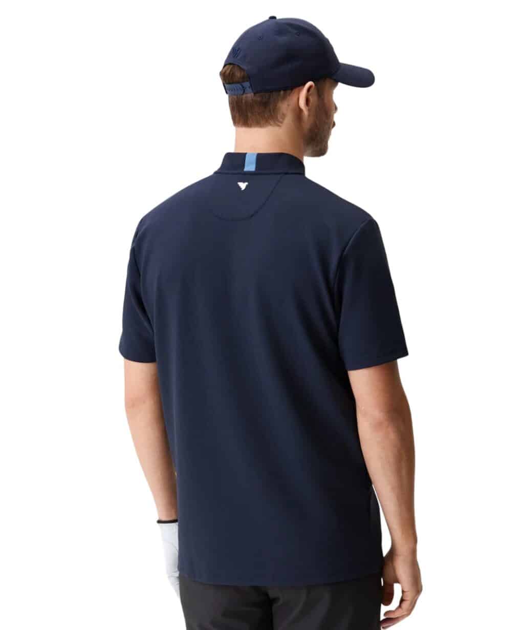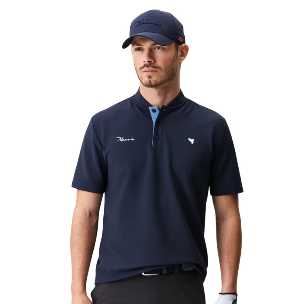 A Macade Golf essential. A relaxed bomber style collared shirt made from a soft and stretchy fabric. This comfy shirt features a ribbed texture along with a boxy cut and straight stitched hemlines, giving it a drapey yet structured silhouette. A modern look for the course.